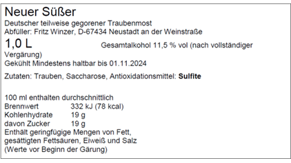 Angabe: „Teilweise gegorener Traubenmost“ somit nicht erforderlich